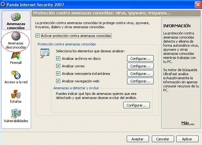 Hacer clic sobre la opción “Amenazas desconocidas”.